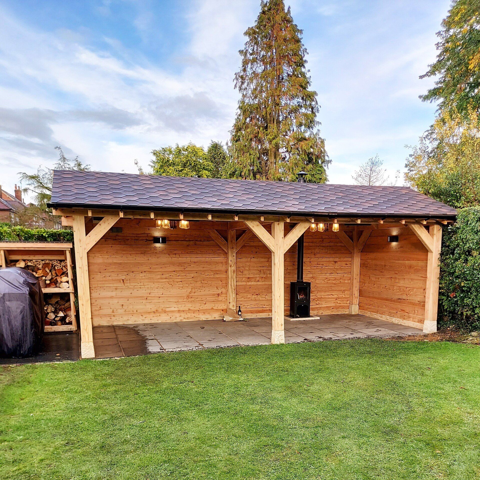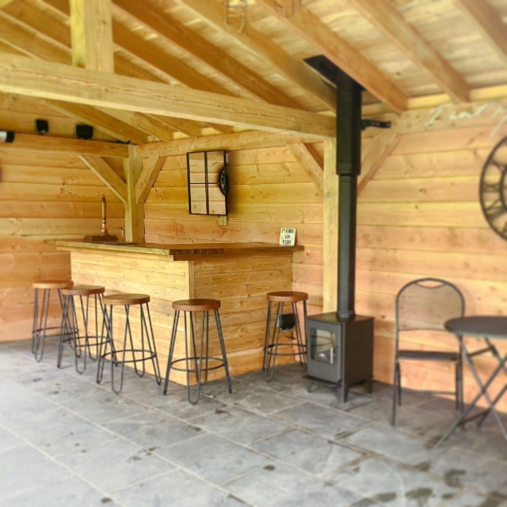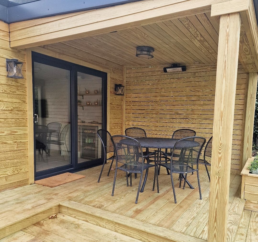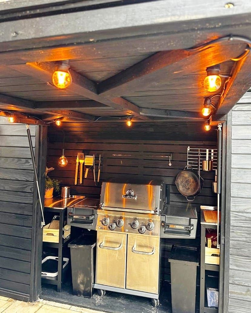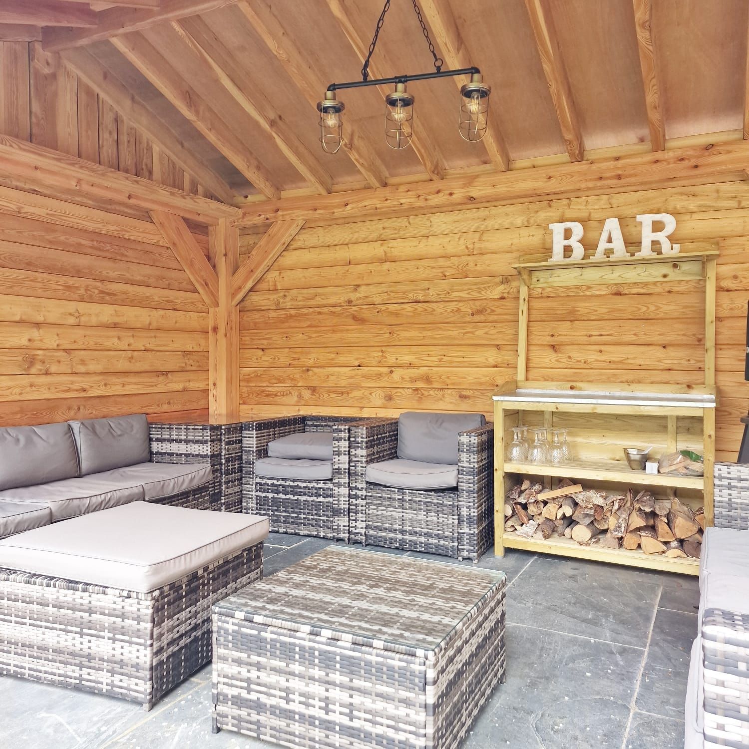 bbq & log store - bbq shed - bar unit -panelling - small space dining - boiler concealing