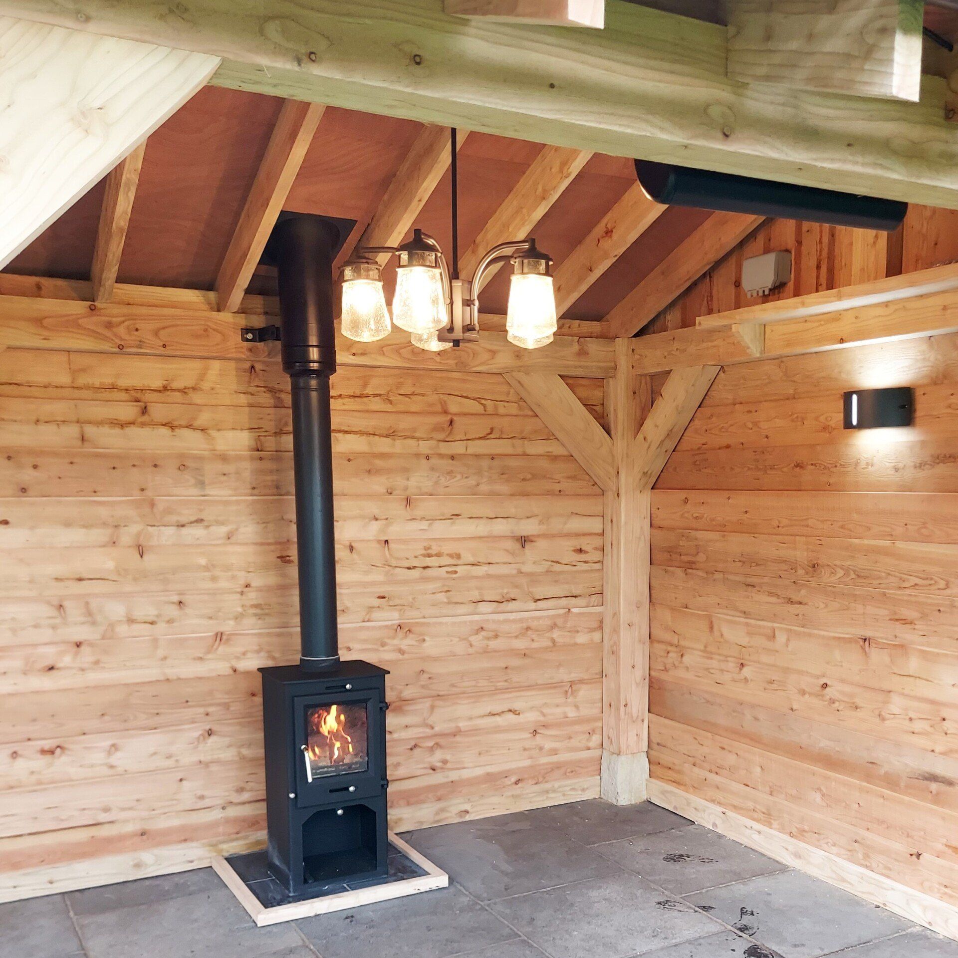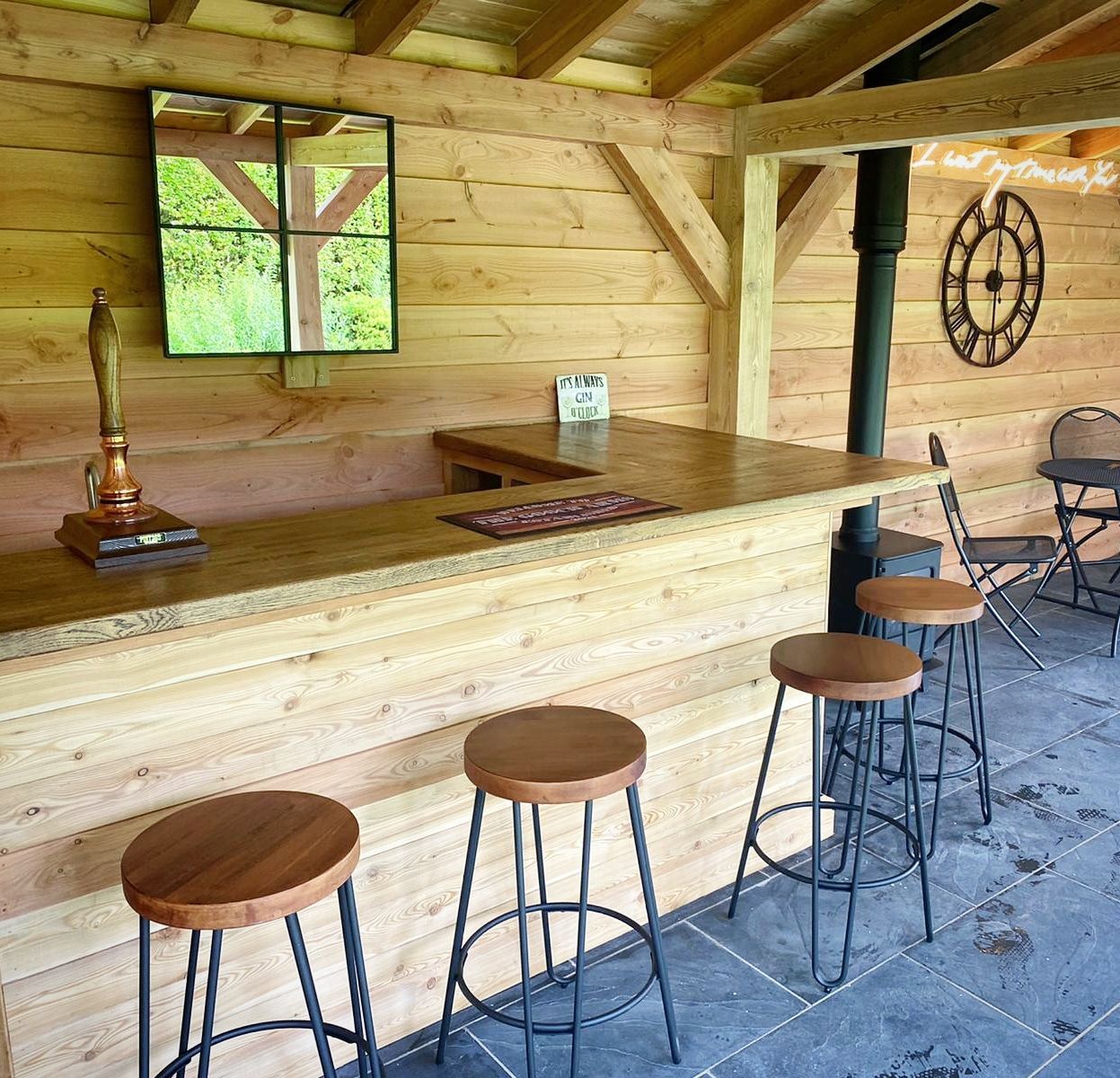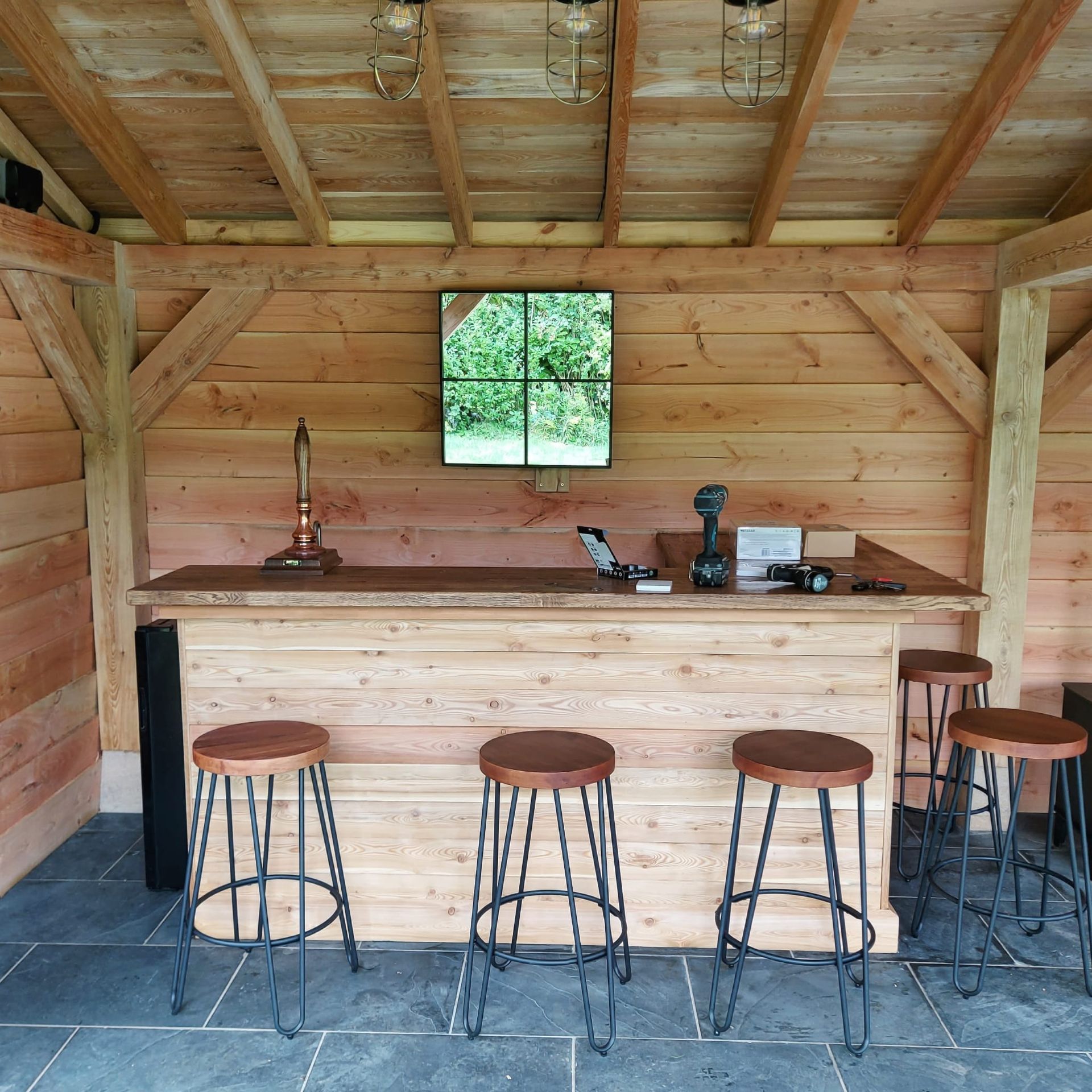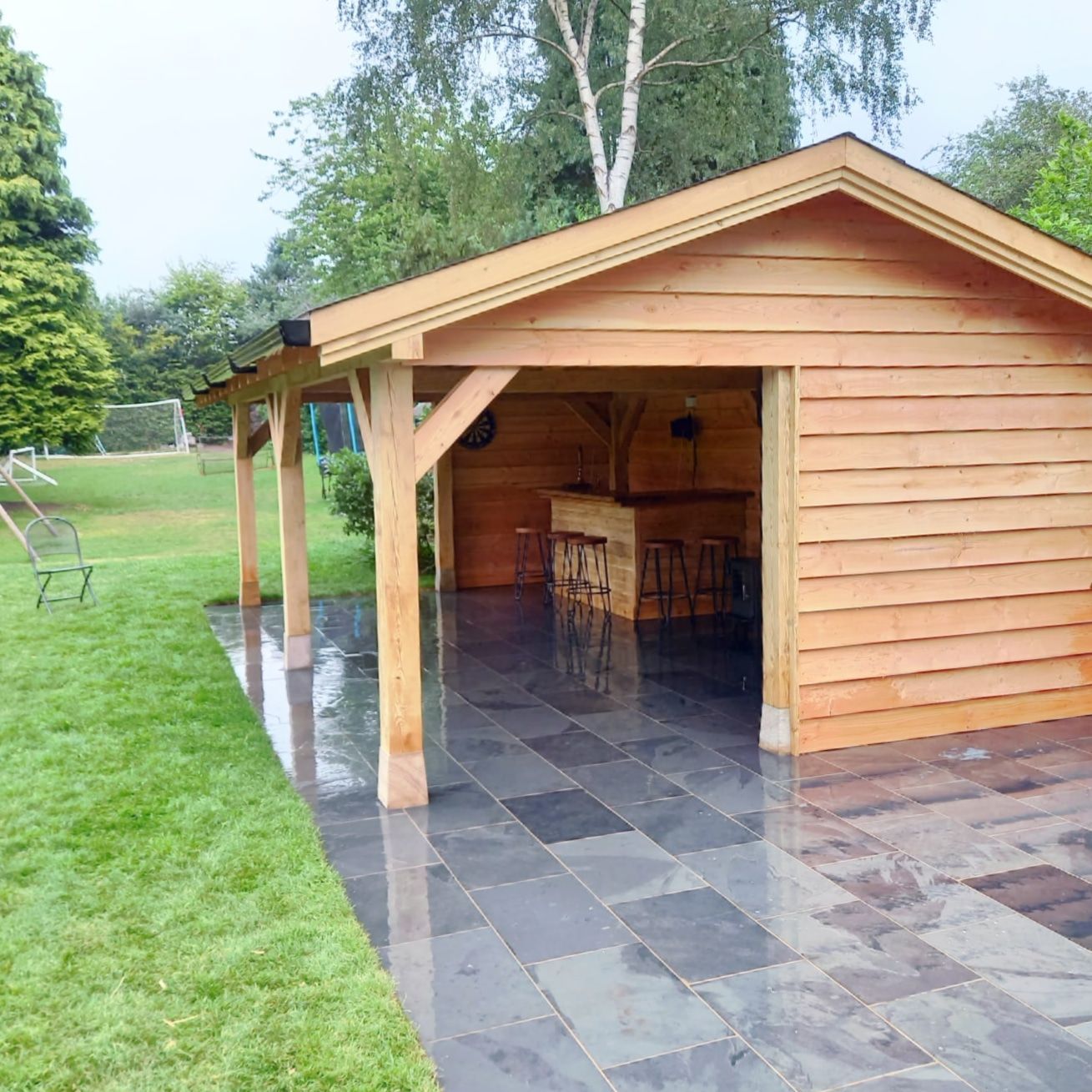 bbq & log store - bbq shed - bar unit -panelling - small space dining - boiler concealing