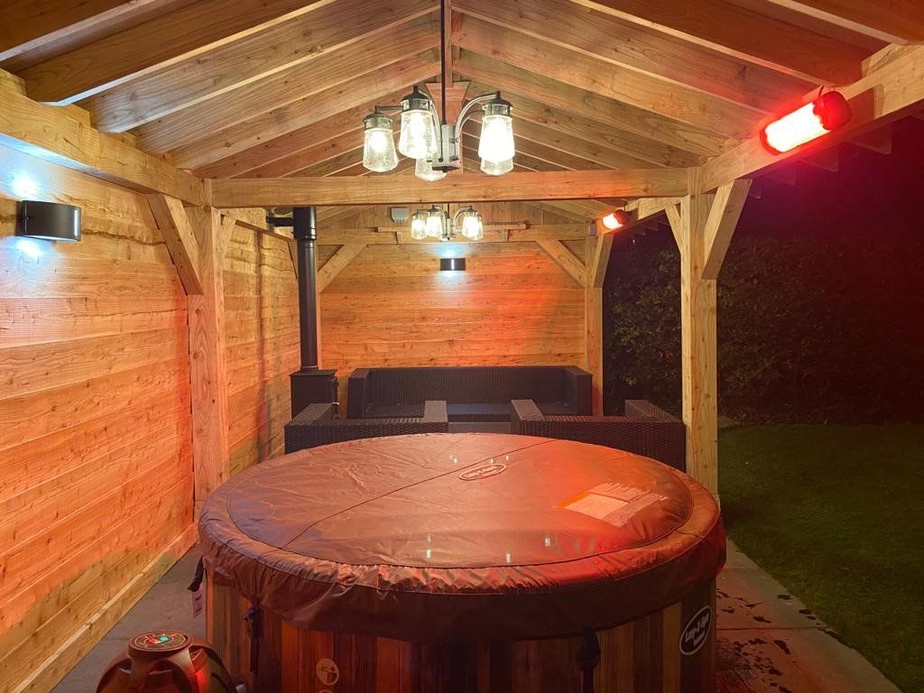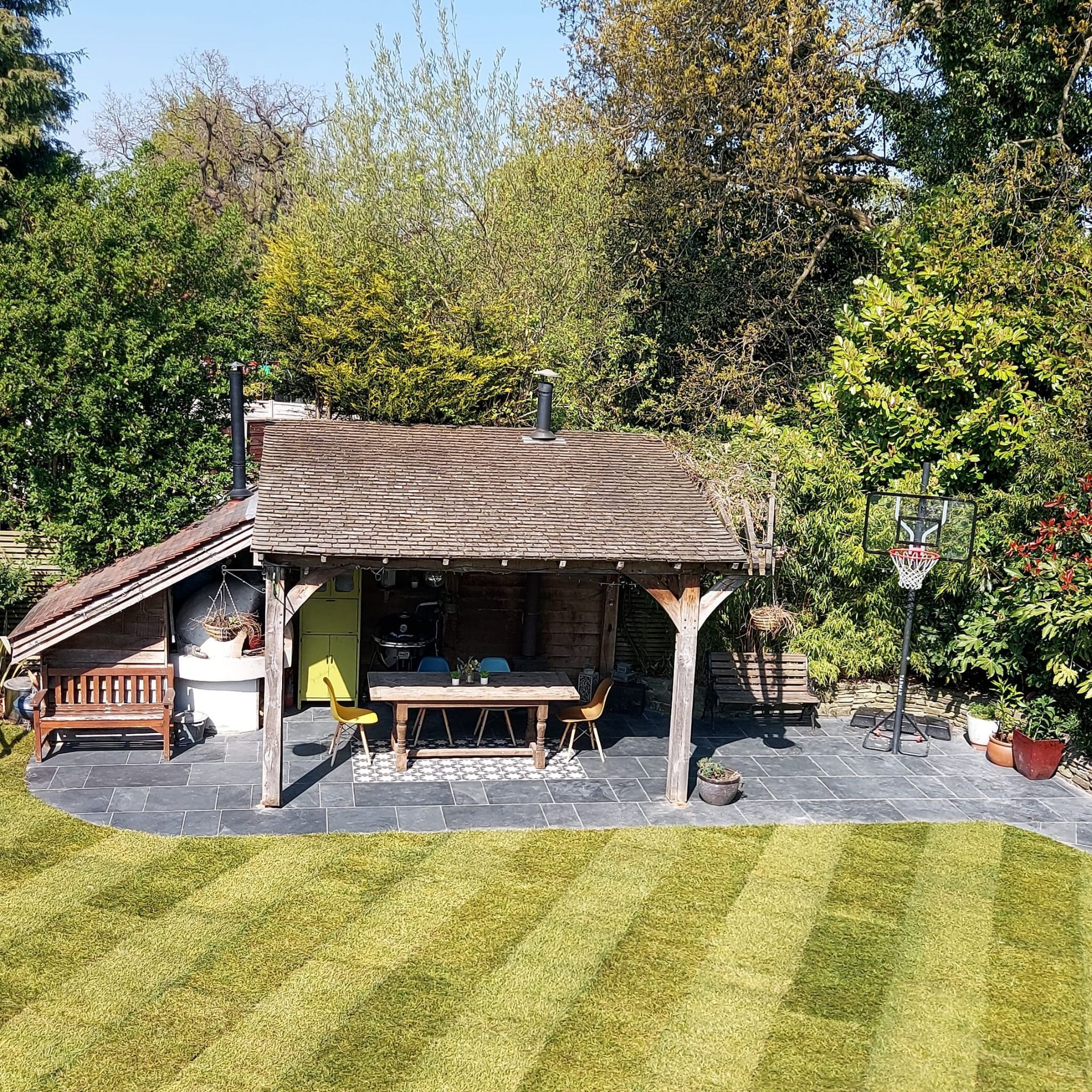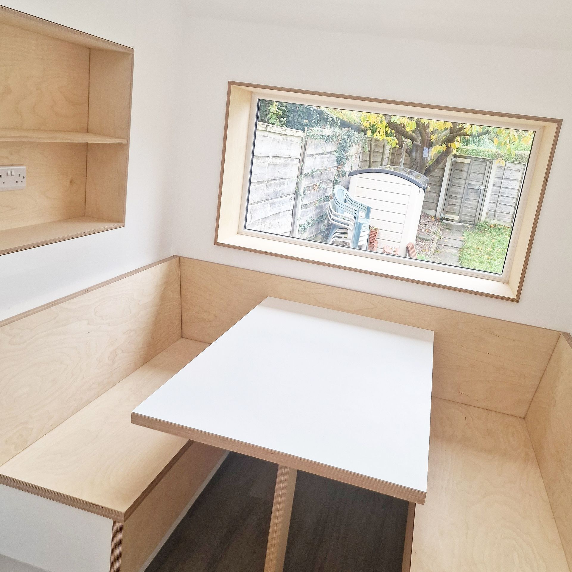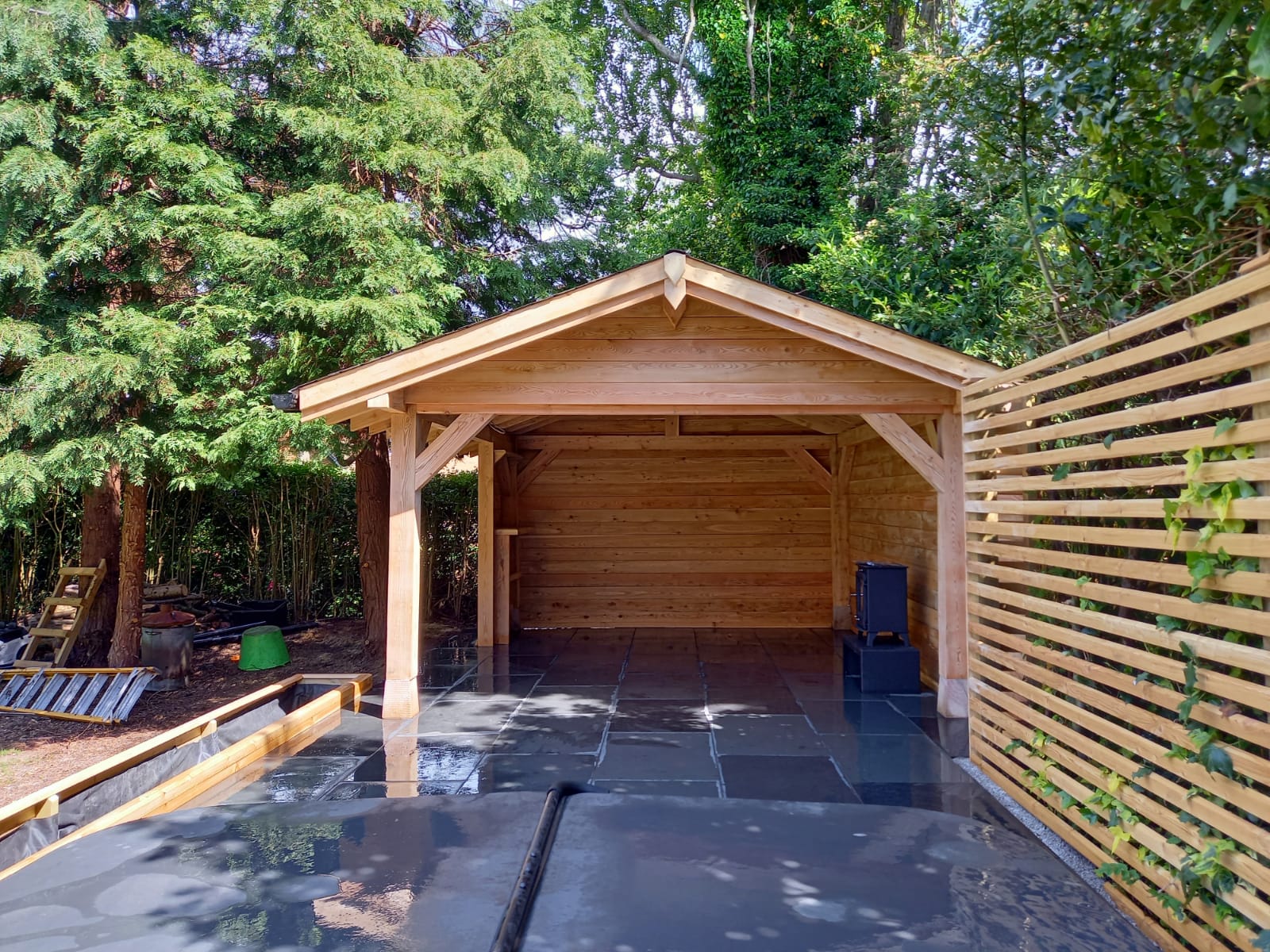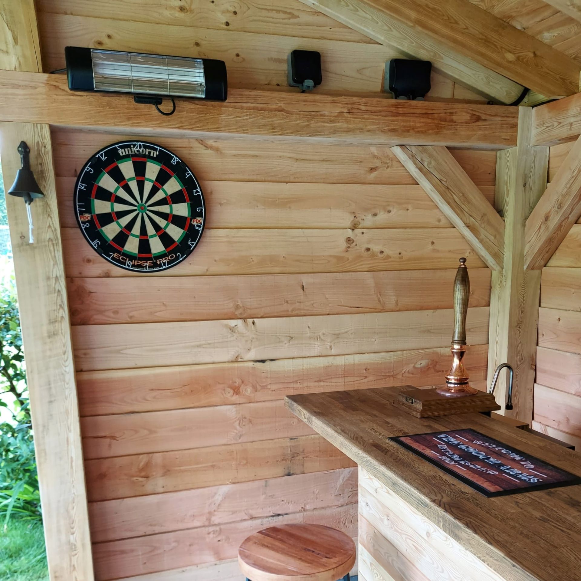 bbq & log store - bbq shed - bar unit -panelling - small space dining - boiler concealing