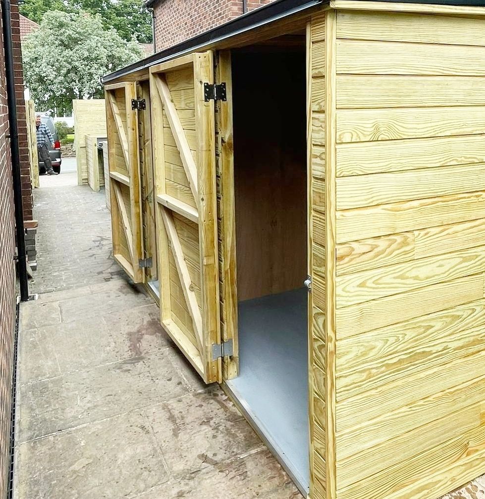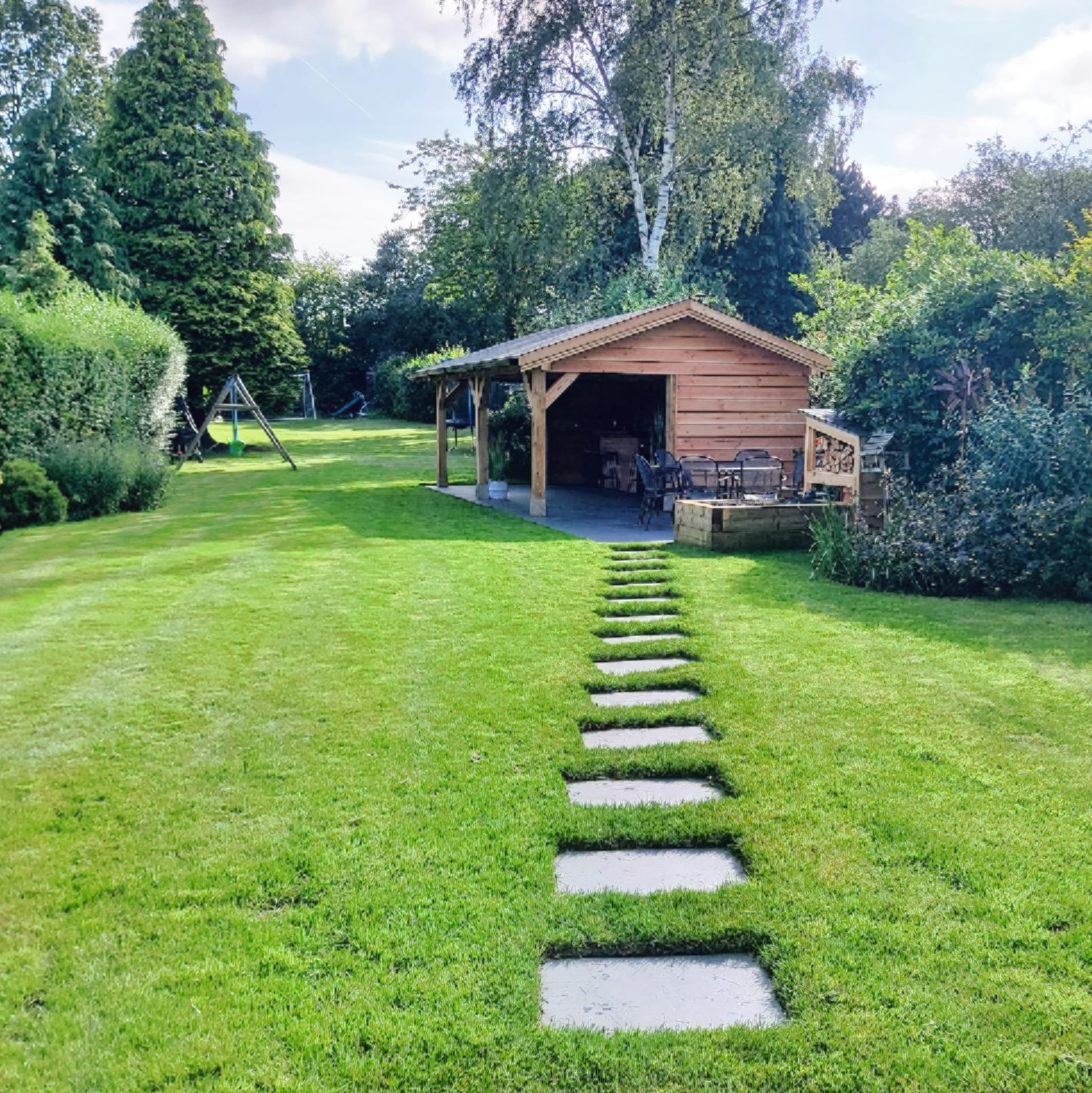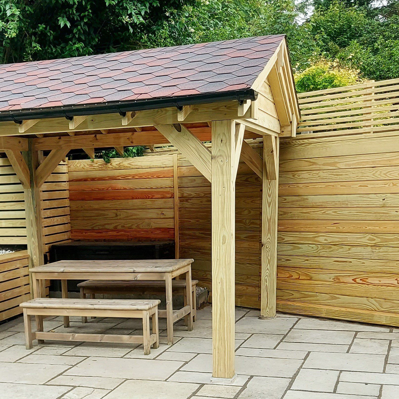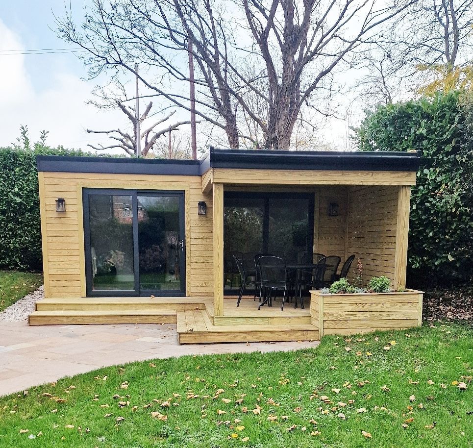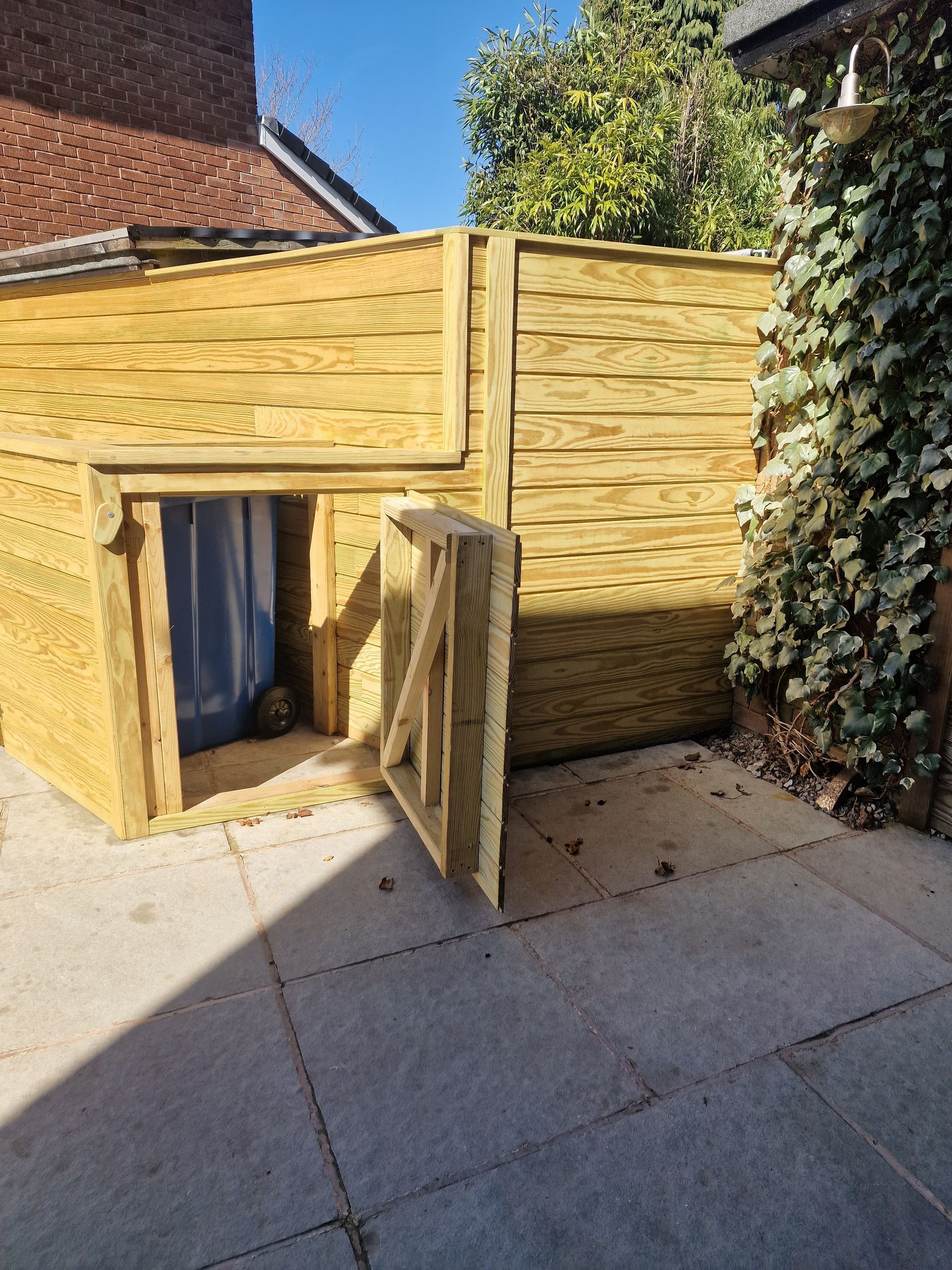 bbq & log store - bbq shed - bar unit -panelling - small space dining - boiler concealing
