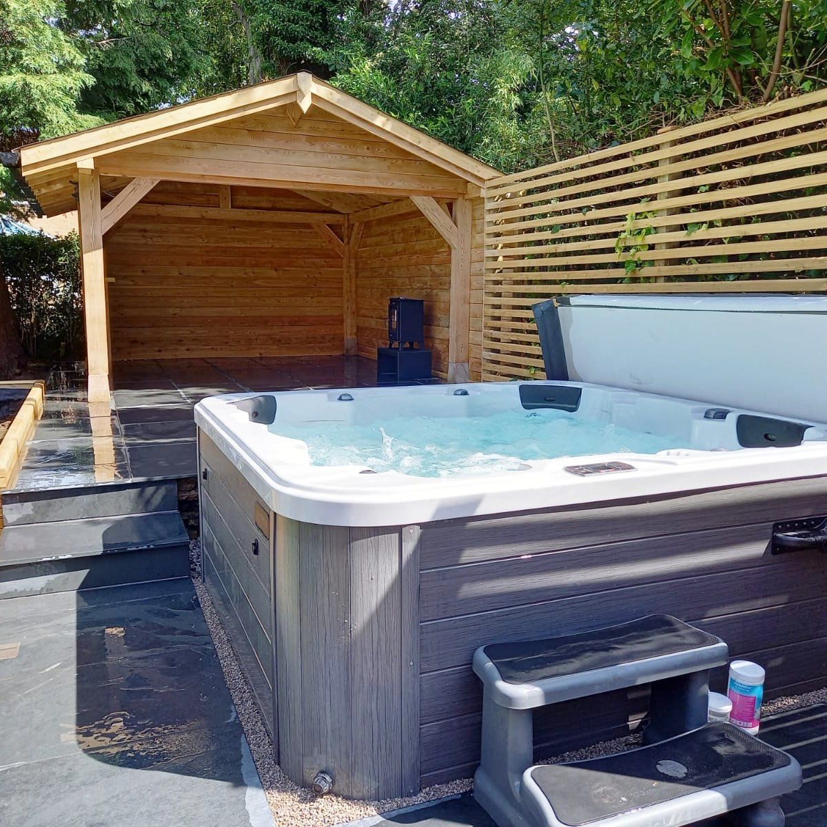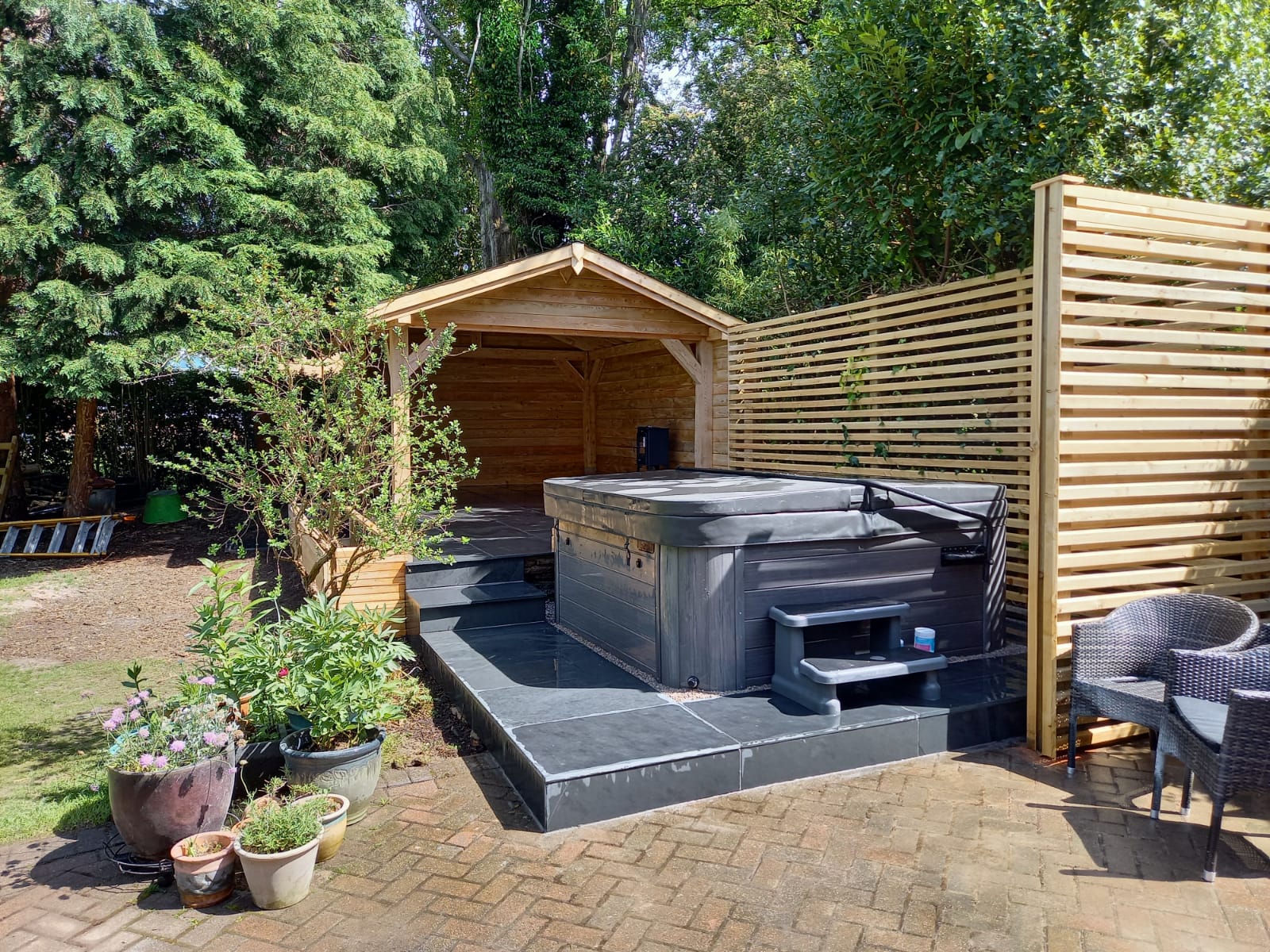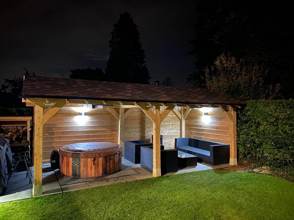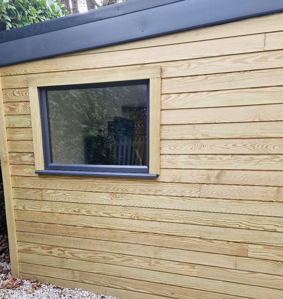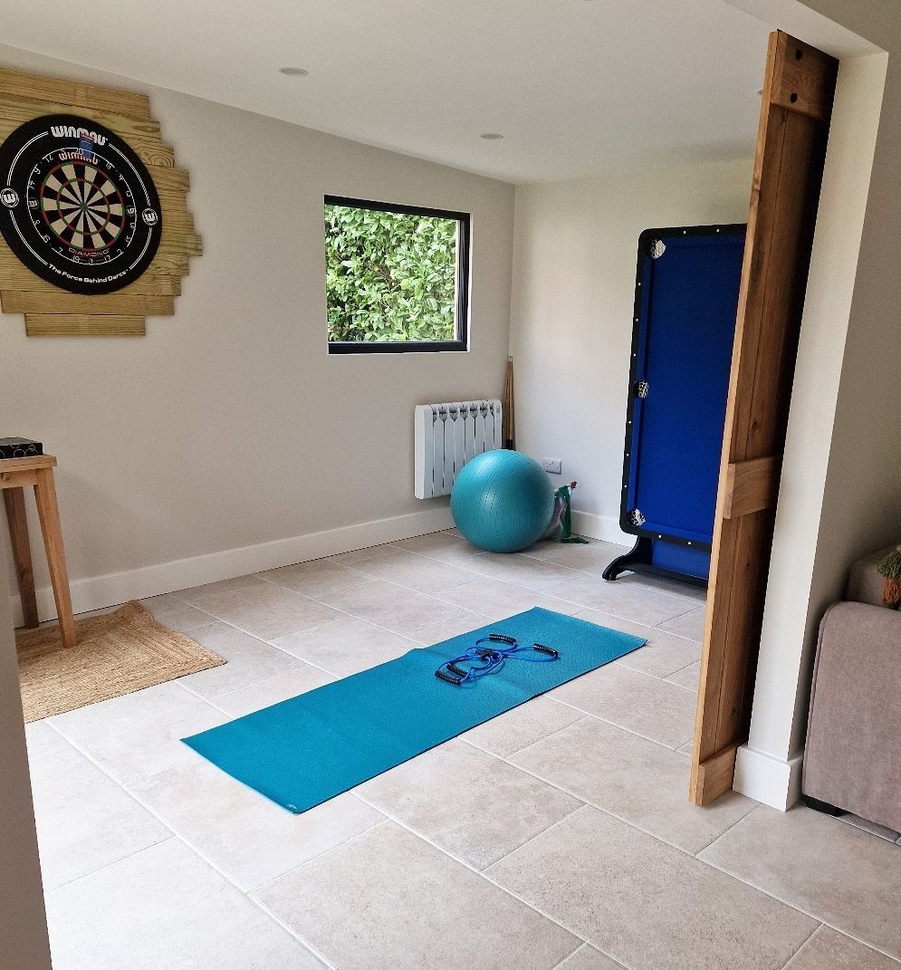 bbq & log store - bbq shed - bar unit -panelling - small space dining - boiler concealing
