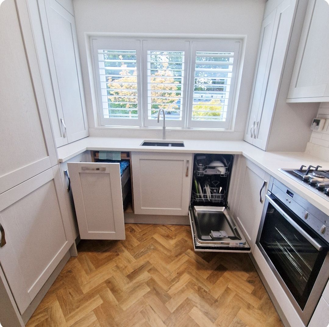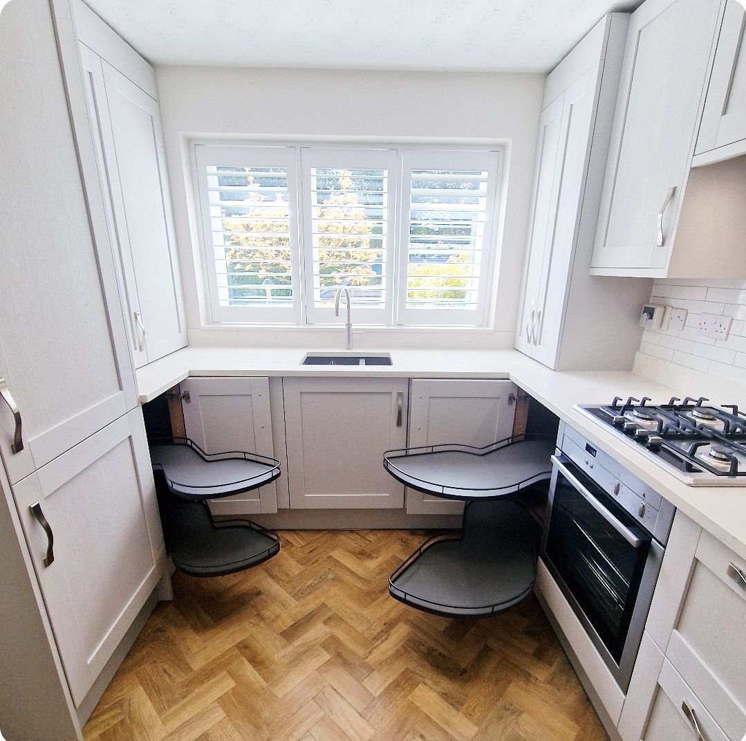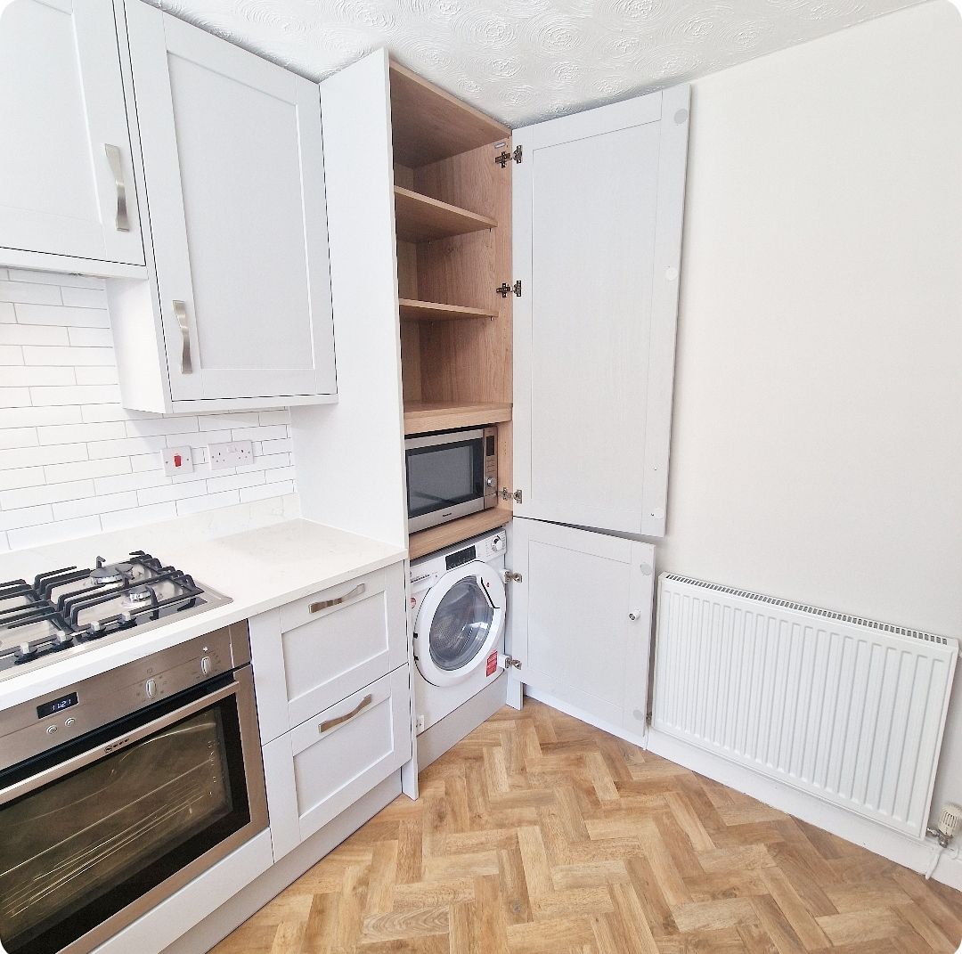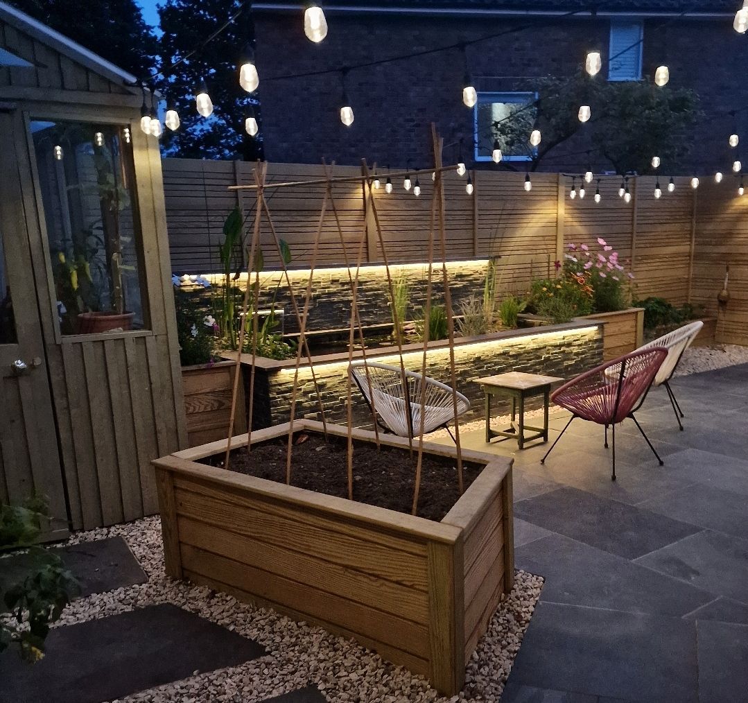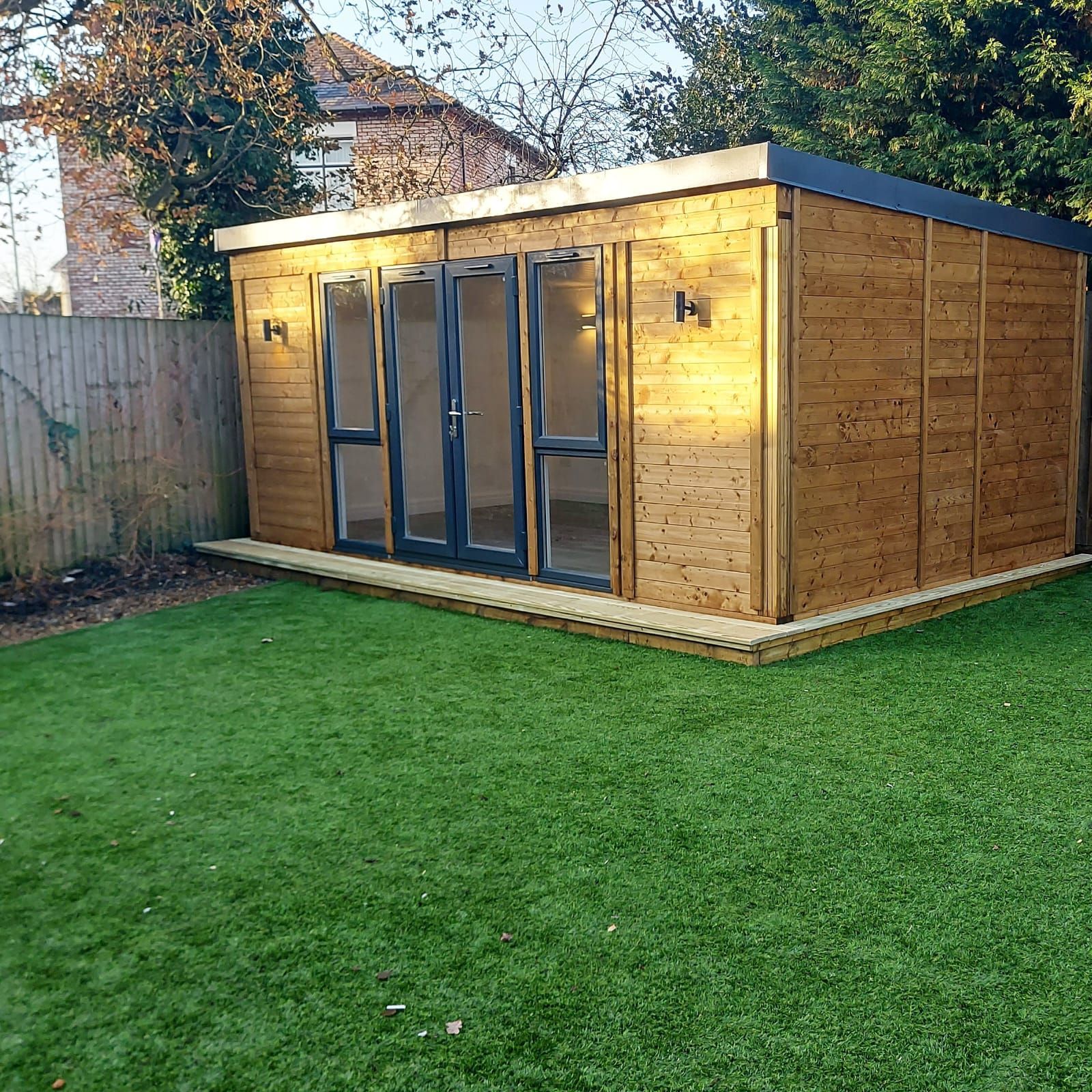 bbq & log store - bbq shed - bar unit -panelling - small space dining - boiler concealing
